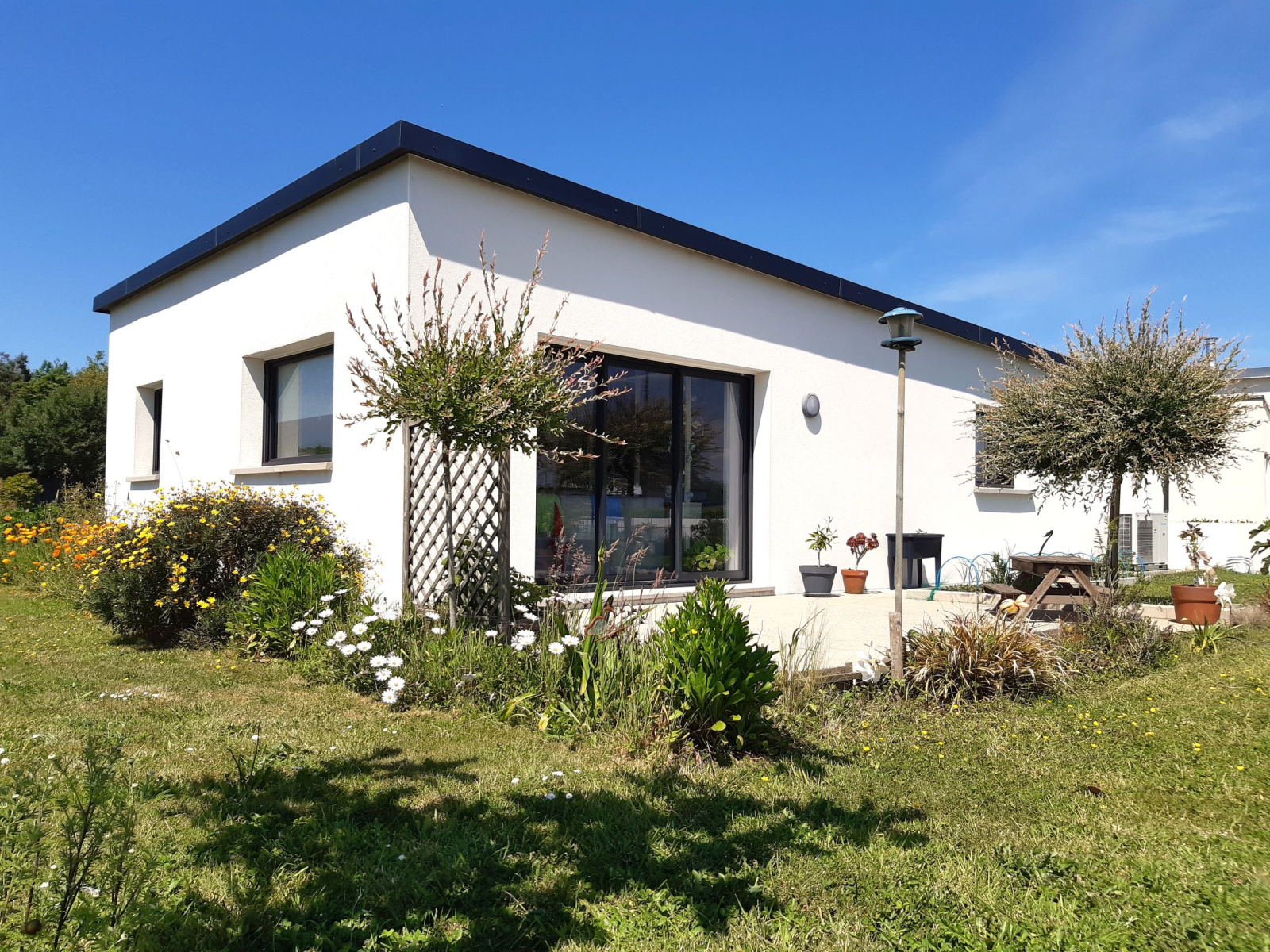 SOUS COMPROMIS - Dans quartier résidentiel à deux pas des commodités, Maison d'habitation édifiée de plain-pied en 2019, sur terrain d'env. 600 m², comprenant : - Entrée avec placard, wc, 2 chambres, salle d’eau avec wc, bureau, séjour (env. 30 m²) avec accès sur terrasse au sud, cuisine ouverte aménagée et équipée, - Garage attenant (22 m²) avec coin buanderie, ~ Chauffage : pompe à chaleur ~ Assainissement individue aux normes ~ Terrasse (env. 24 m²) en façade sud ~ Joli terrain aménagé et planté en partie clos avec aire de stationnement MAISON DE PLAIN-PIED LUMINEUSE et BIEN AGENCÉE à PROXIMITÉ COMMODITÉS et SENTIERS PIÉTON ! * Honoraires inclus : 4,08 % ttc à charge acquéreur * Prix hors honoraires : 245 000 €